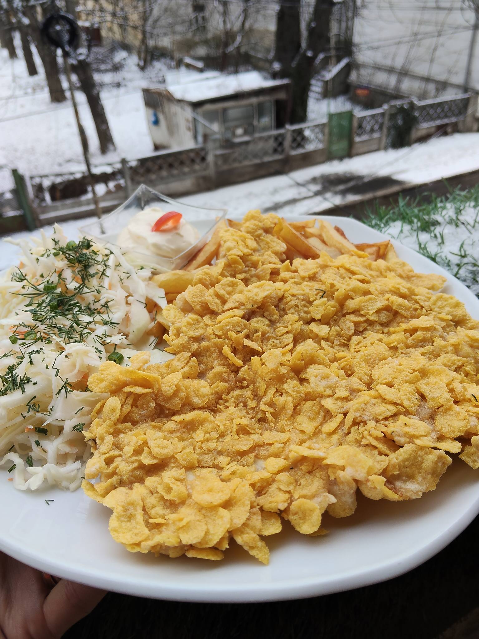 ![]() | Meniu Crispy XL 550 g Snitel de pui in fulgi de porumb + Cartofi prajiti + Salata de varza + Sos | 27.50 lei | |